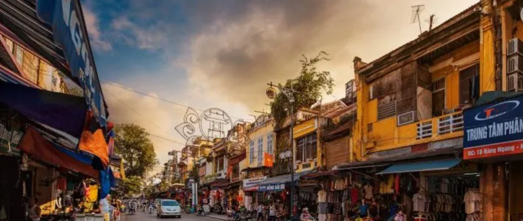 At its heart is the chaotic Old Quarter, where the narrow streets are roughly arranged by trade. There are many little temples, including Bach Ma, honoring a legendary horse, plus Đồng Xuân Market, selling household goods and street food.